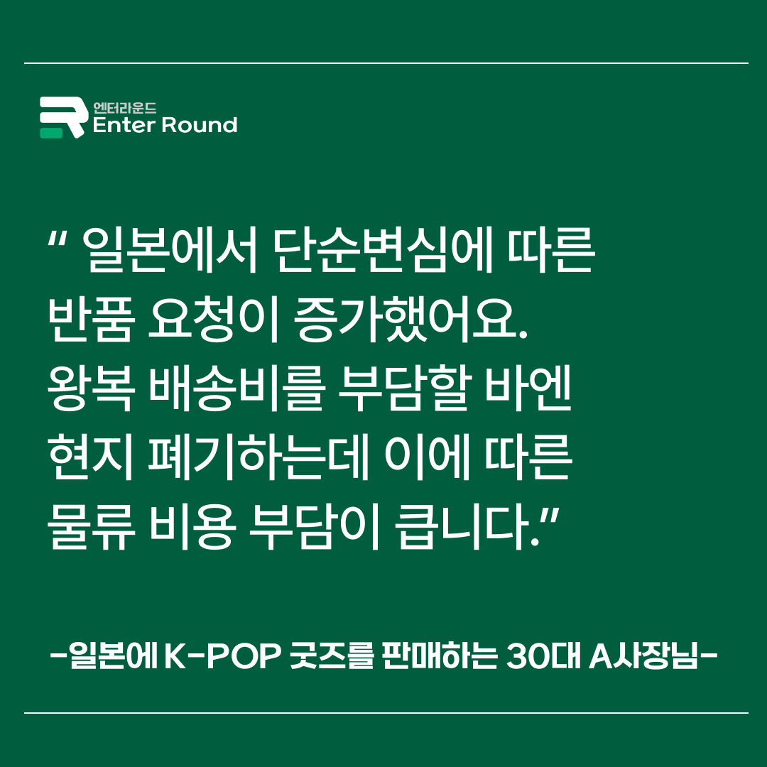 A사장님은 일본 내 K-POP 팬덤을 대상으로 굿즈를 판매하고 있습니다. 일본 내 판매량이 증가하면서 사업은 성장 궤도에 올랐지만, 단순 변심에 의한 반품 요청 역시 함께 늘어나 고민이 깊어졌습니다.