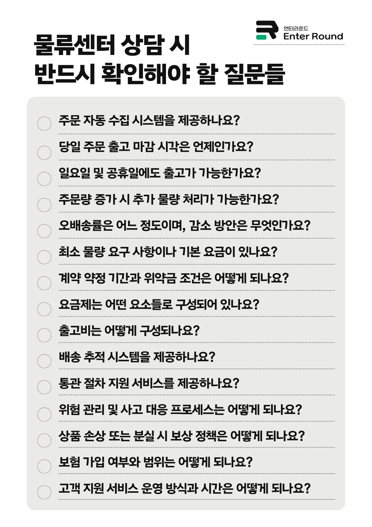 ✅ 물류업체 상담 시 반드시 물어봐야 할 필수 질문 15가지