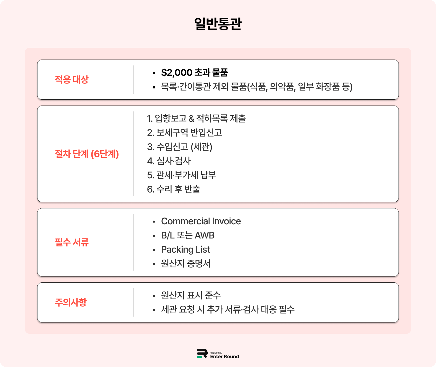 특히 일반통관의 경우 서류 정확성이 핵심입니다.
