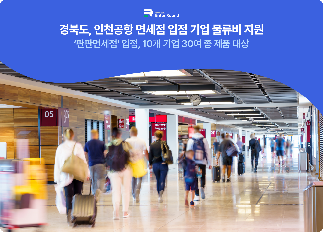 경북도는 인천공항 제1터미널 12번 게이트 인근 ‘판판면세점’에 입점한 도내 우수기업의 물류비를 지원합니다. 대상은 식품·화장품·패션잡화 분야 10개 기업 30여 종 제품입니다.